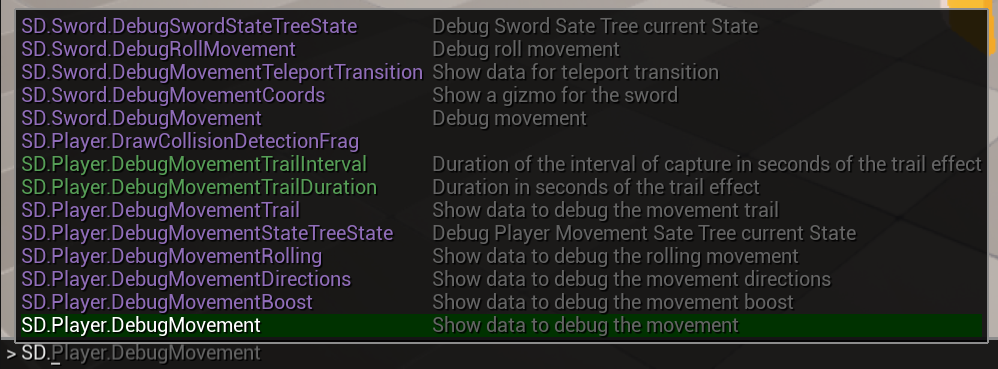 For the player movements and sword behaviors I created a handful of console commands. If I had more time I would have integrated the system inside the rewind debugger for an even better experience.